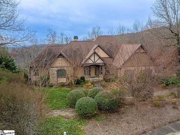 Come home to The Cliffs at Glassy, The Cliffs’ original gated golf and wellness community atop Glassy Mountain in Landrum, SC. Perfectly tucked away in the trees, this beautiful mountain retreat offers incredible, panoramic views to the south of Paris Mountain and northwest views of Glassy Mountain ridgelines. The house is positioned flawlessly on the homesite to take advantage of the mountain views and peaceful serenity on 2.5 acres of privacy. Come home, unwind and settle in with nature in this scenic, Cliffs at Glassy home. As you approach the home’s entry you will immediately notice the stunning curb appeal with beautiful landscaping, flagstone front porch and an incredible stone and hardboard exterior. The home provides a well-thought out open floor plan and many windows on the rear that frame the mountain views to perfection. The open main level features fantastic living spaces including a kitchen with plenty of counter space, a dining area, and great room. The striking great room features hardwood floors, a gas fireplace and direct access to a long deck that extends across the back of the house and connects to a cozy screened-in porch. An oversized master bedroom suite sets up a relaxing atmosphere on the main level with two walk-in closets and a plush master bath with dual vanities, a jetted tub and separate tiled shower. A spacious guest bedroom suite along with a walk-in laundry room round out this floor. The lower level is comfortable and welcoming for houseguests with a generous third bedroom connected by a spacious family room with trey ceilings. Enjoy a morning cup of coffee from the private lower level screened porch or patio accessed from the family room. Plenty of storage space is available on this floor, including a walk-in closet and unfinished room. A Club membership at The Cliffs is available with this property giving you access to all seven communities.