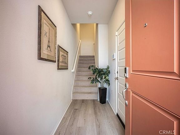 Fabulous energy efficient end unit, 2br town home with owned solar! This immaculate property is located across from Casa Colina, approx one mile from historic downtown La Verne, University of La Verne, Pomona Valley Hospital, and only two miles from the Claremont Village and Colleges! Walk or ride your bike to amazing shops and dining!! Three levels of luxurious living, including LV floors and plush carpeting throughout, a neutral design pallet, high ceilings and panoramic dual pane windows. The main level showcases a gourmet kitchen with crisp white cabinetry, quartz counter tops providing an abundance of prep surface, large island with pull up bar seating, stainless steel appliances and storage pantry, plus dining area leading to spacious balcony with mountain views, creating indoor/outdoor living. Immediately adjacent is the open concept family room with free standing electric fireplace and wall of light filled windows. The convenient half bath completes this level. There are two spacious bedrooms and full baths on the third level, including the relaxing primary with walk in closet, and en-suite boasting a dual sink vanity, quartz counter tops and glass enclosed oversized shower . The stackable washer and dryer are located on this level, providing convenience and ease of use. Spacious two car attached garage, charming dog park and common area maintenance, as well as the incredible location, make this the perfect place to call home!