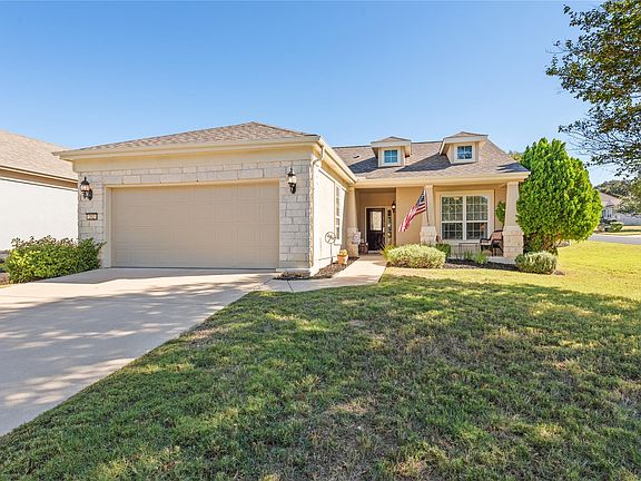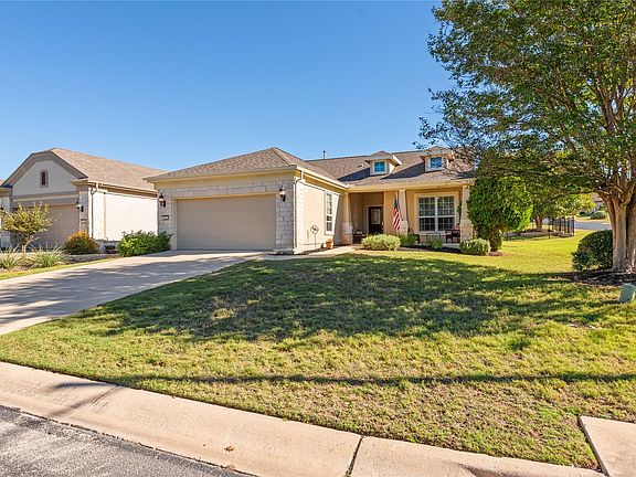 SUPER COMFORTABLE & DESIREABLE CAMBRIDGE FOOR PLAN! Come check out this beautiful corner lot home in Sun City Texas! This floor plan has 3 full bedrooms, 2 bathrooms, an open kitchen, and a sun room sitting area by the rear patio. The rear flagstone patio is large enough for multiple sitting areas and a grill! The back yard is fully fenced. The primary bath features a jetted tub and separate shower. The kitchen in this home is very upgraded with 42" cabinets, built in stainless, appliances, and granite counter tops. No Steps! Come experience the Sun City lifestyle in this ever-popular floor plan. MAKE SURE TO SEARCH THE ADDRESS ON YOUTUBE FOR A FULL VIDEO TOUR!