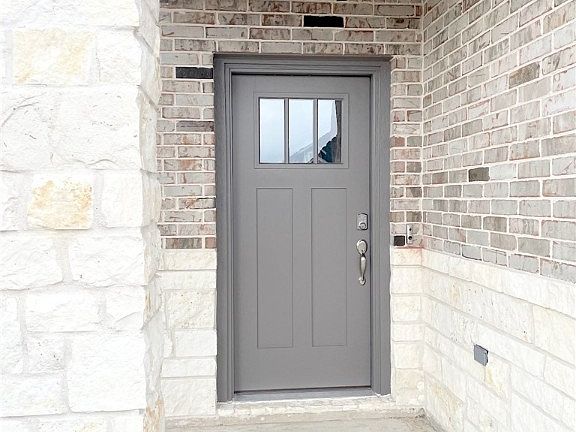 The beautiful McKinney Texas Hill Country sits on a peaceful corner lot in TerraVista that displays that timeless charm you have been looking for. This open concept, split bedroom plan features a large family room with beamed ceilings, a flex room, a gorgeous kitchen with large quartz island, a white farmhouse sink, upgraded stainless steel appliances & custom-built wood cabinetry. The private master suite features a large Euro walk-in shower, 2 separate vanities, and an over-sized master closet. The backyard will have an over-sized covered patio made perfect for entertaining family & friends. Font & backyard landscaping package included. With many new designer selections all throughout, this home is a must see! Homeowners can expect peace & quiet with the luxury of living in Victoria's most sought-after community with easy access to some of the best schools in Victoria.