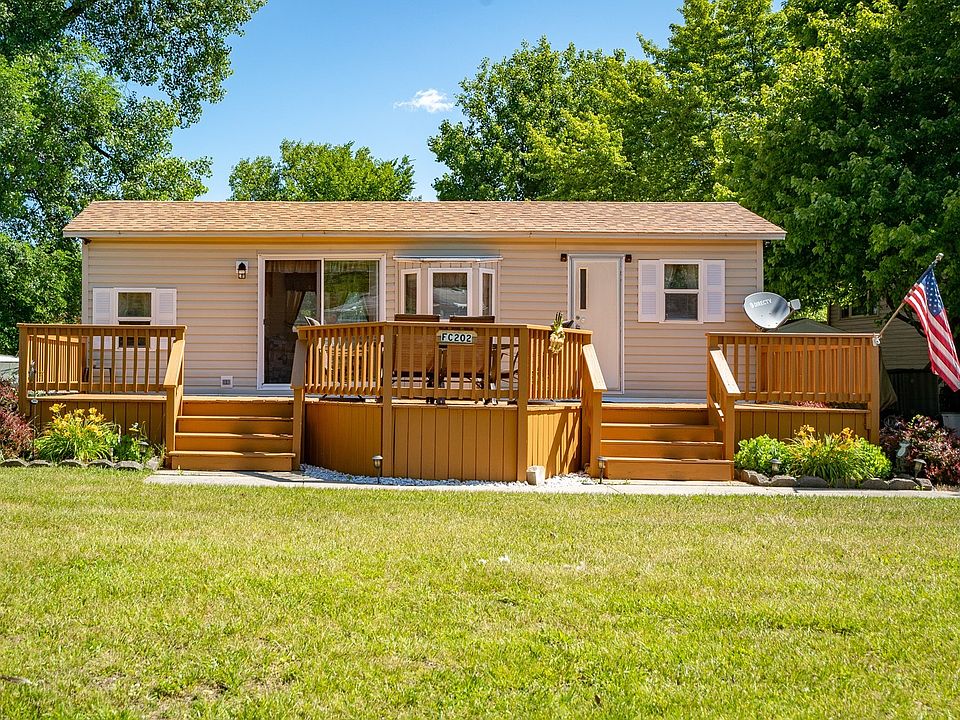 WATERFRONT HOME! IMMACULATELY MAINTAINED fully furnished home. Walk out to your beautifully stained deck overlooking 119 Ft of water frontage (one of the largest waterfront lots in Shadow Lakes 105x131x55x64) with sodded yard, 2021 paver sea wall ($10,000), concrete seawall boat dock with electric & shed. Roof (2021), AC/Furnace (2021), HWH (2021), New sliding doors (2021), New carpet (2021). Large gravel driveway for plenty of parking. It is a must see. Make this perfect escape your weekend retreat or year-round residence! Less than an hour from Chicago & just minutes off I-55. Enjoy incredible fishing (spring fed stocked lakes), boating, swimming, kayaking, family & group activities, in this gated community w/club house, pool, beach, volleyball, basketball, miles of nature trails & much more. Call for your showing TODAY.