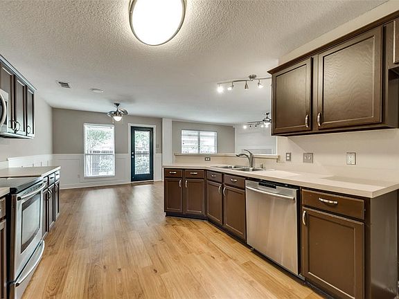 Turn key move in ready! This 4 bedroom, 2.1 bathroom DR Horton home sits in a quiet cul-de-sac, has a large back yard and has updates and upgrades throughout, including custom Elfa pantry, new Trane HVAC system upstairs, new water heater, new microwave, new flooring, refinished ceilings - no popcorn! - CAT5 cabling, speaker and coax wired throughout, full sprinkler system, blinds and ceiling fans! Great location and fantastic Allen ISD schools! Call to schedule your showing today!