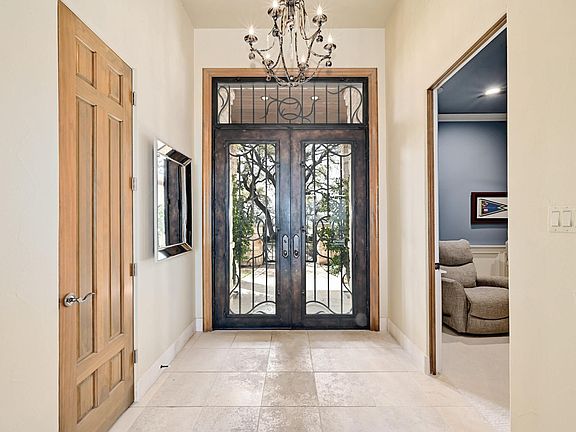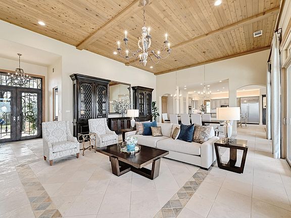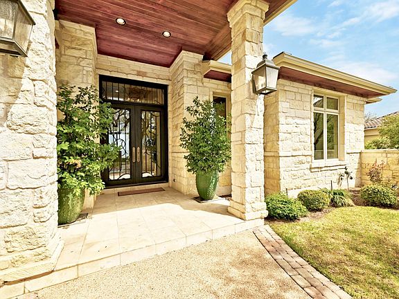 The rolling hills of Barton Creek Lakeside is the perfect setting for this single level, masterfully built 3959 square foot home surrounded by mature oak trees. The gated, resort style community, has an on site gate attendant 24 hours a day and is graced by the Championship Arnold Palmer golf course. Whether your leisure life centers around outings on the links or lounging by your private pool, this lovely stone residence with views of the lake from nearly every window is the perfect haven for the peaceful life. Custom details and quality craftsmanship grace every corner of this well-planned space. The entry, through double custom iron and glass doors, rewards you with walls of fixed glass and casement windows taking advantage of a gorgeous view of Lake Travis and the countryside. Stone floors, window placement, high ceilings and rich, stained moldings abound. The floor plan takes advantage of views and sun orientation making living here simply beautiful! The pool catches and reflects the moon under star-studded hill country nights. As you enter this lovely home, a private, paneled office sits just to the left of the foyer. A well-located wet bar, tucked invitingly off the entry, includes a wine refrigerator and ice maker. It is a lovely transition to the open living and dining with 14- foot high wood ceilings. The views to the lake serve as nature's artwork and a floor to ceiling, wood burning, stone fireplace anchors the far end of the expansive living room. Patterns in the stone floors define the rooms that flow into each other and yet have their own sense of purpose. A custom buffet brilliantly separates the kitchen from the dining room and serves as a base for entertaining, either formally or informally, as guests move from the outdoor covered porch and pool into the heart of the home. With a Thermador cooktop, Sub-Zero built in refrigerator, a warming drawer and a second vegetable prep sink, the kitchen allows for family gatherings and/or culinary efforts of a creative chef..all with sweeping lake views. There is a desk area just off the kitchen that is the perfect size for quick references to cookbooks or laptops. The primary suite, with massive sliding glass doors on one side and matching fixed glass floor to ceiling windows on the other, honor the lake, pool and surrounding countryside as its focus. However, a push of a button activates and lowers motorized shades to create a private, secluded place of escape and rest with a gas fireplace. The primary bath has a walk-in shower, separate vanities, a jetted tub and custom tiles and granite counters. A room just off the owner's suite makes for a quick work out stop or a 2nd office. The expansive primary closet has built-in bureaus and shelves. Each individually decorated secondary bedroom has an en-suite bath. The fully finished, epoxy floor garage has 3 individual garage doors with room for two cars and a golf cart. There is plenty of storage space and a dedicated storage closet within the home. The well-equipped laundry room has a window, broom closet, wall mounted ironing board and a space for everything.Outdoor living is enhanced by the pool, spa and surrounding covered porches with stained wood ceilings and stone floors. Views to forever can be enjoyed while grilling at your built-in outdoor grill. Whether retiring to a home that suits all your needs and checks off all your desires, or creating a refuge from a busy life, this lovely hill-country retreat, surrounded by views and giant oak trees, is sure to please.