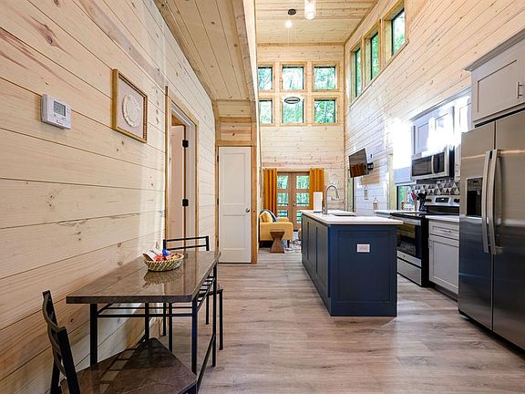 Each cabin, ranging from approximately 700–800 sq. ft., showcases custom finishes, open-concept layouts, and inviting interiors filled with natural light. Vaulted ceilings, wood accents, and cozy fireplaces create a warm atmosphere that blends luxury and comfort. The modern kitchens in all four cabins are equipped with stainless steel appliances, stone or quartz countertops, and thoughtful cabinetry, while dining spaces and living areas flow seamlessly for easy entertaining. Spacious bedrooms feature Sealy Tempur-Pedic mattresses and charming lofts—perfect for relaxation or additional sleeping space—while beautifully appointed bathrooms offer spa-like finishes.