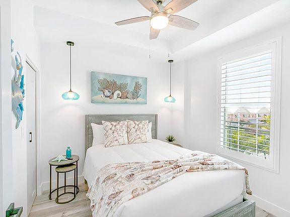 Two full bathrooms, each featuring modern fixtures and walk-in showers, provide convenience and privacy. Guests also enjoy access to resort amenities, including a clubhouse, sparkling pool, and the marina for water adventures like kayaking or paddleboarding.