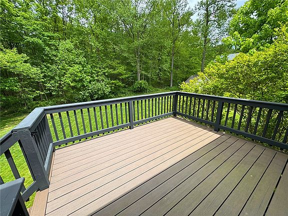 Tucked at the end of a cul-de-sac and surrounded by mature trees on two sides, this beautifully maintained 3-bedroom, 1.5 bath home offers a perfect blend of comfort, style and privacy. Inside, vaulted ceilings enhance the open, airy feel of the main living and primary bedroom spaces. The kitchen features granite countertops, stainless steel appliances and a premium Bosch dishwasher. Both bathrooms and the laundry room have been tastefully updated with modern finishes. A finished basement provides flexible bonus space, while the integral garage offers convenience and extra storage. Recent upgrades include a new central A/C unit and newer water heater. Enjoy outdoor living with a composite deck, stone patio and Leaf Filter gutter guards for low maintenance. This move in ready gem is a rare find in a serene, desirable setting.