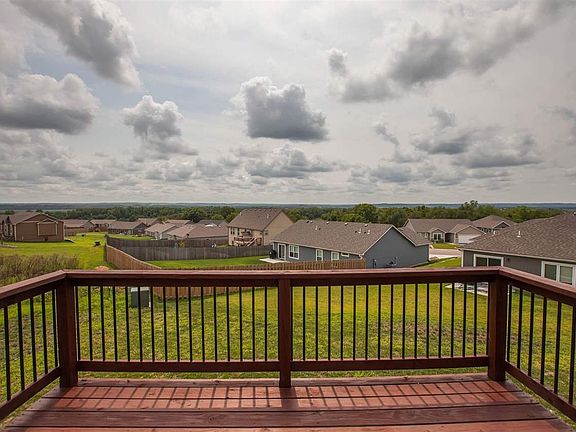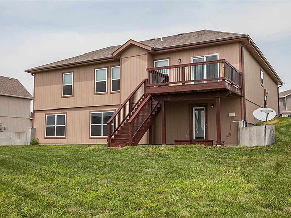 Newer construction home with lots of space and open floor plan. This home has beautiful views over looking the Kansas River Valley. The main floor has an eat in kitchen with newer appliances, lots of counter space and a serving bar and deck off the eating area and large windows over looking the river valley. Main floor laundry and master suite with bathroom and walk-in closet. There is a very large, rough finished walk out basement that has full light. The basement has been framed for a large family room, 2 more bedrooms and plumbed for a 3rd bathroom. Lots of storage space in the basement as well. Large, manicured yard and 2- car attached garage.