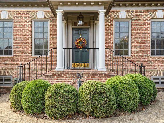 Welcome to Baldwin Place and the beautiful home located at 202 Kings Square. This all brick 4,076 square foot home incorporates Virginnia Colonial elements from Yorktown and Williamsburg. Exterior dentil moldings, a step back chimney design and copper downspouts and gutter lend elegance to the property. Front windows have a keystone jack arch which emphasis the owner’s attention to detail. Double staircases lead you to the front door where a colonial rim lock in solid brass is featured. Inside, you are welcomed into the wide entrance hall with adjacent formal dining room. The home opens into the expansive living room that showcases a gas log fireplace. The adjacent kitchen, breakfast area and serene sun porch are thoughtfully curated and inviting. The cozy den with built-in bookcases and a fireplace with gas logs is perfect for relaxation. The primary first floor suite features his and her full baths and well as double walk-in closets. Upstairs the large balcony seating area overlooks the first floor and opens to three additional bedrooms and another full bath. Two spacious finished basement rooms offer flexibility for the homeowner. Baldwin Place offers lawns mowing as well as leaf and snow removal as part of the HOA.