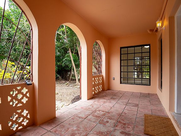 This fully refurbished 3-bedroom, 2-bathroom home is tucked away in a peaceful cul-de-sac, bordered by lush mature trees and offering unparalleled privacy with no neighbors on three sides. Natural light floods the interior through expansive 6-foot windows throughout the home. Designed with a U-shaped layout, the home wraps around a spacious central patio--perfect for seamless indoor-outdoor living.The private primary suite is located on the west wing and features a generous walk-in closet and a luxurious en-suite bathroom with double sinks, a soaking tub, and a separate shower. For added privacy, the suite can be closed off from the adjacent dining area. The two south-facing bedrooms provide direct access to the patio. Continued... The sliders on these doors have grillwork for added security. The home is set on just over a half acre. The ample yard is a serene retreat. A graceful rubber tree welcomes you at the entrance of the home, while a tamarind tree provides shade and character to the patio space. A secure storage room, accessible from outside between the east-facing bedrooms, houses the water heater and pump.