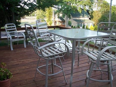 Well maintained four bedroom home with many updates on almost a 1/2 acre Village treed lot with lots of garages! Enter the front door to a huge living room with beautiful stone NFP. Updated eat in kitchen with lots of cabinets,new flooring, large pantry,solid surface counters with plenty of working counter space. Formal dining area with new floors and patio doors to deck. Master bedroom and 2nd bedroom on main. Full bath SOT and vanity main. Two bedrooms bedrooms upper level. Lower level rec room plus full bath and laundry area. Updated windows,roof,gutters, some carpeting. A must see!!