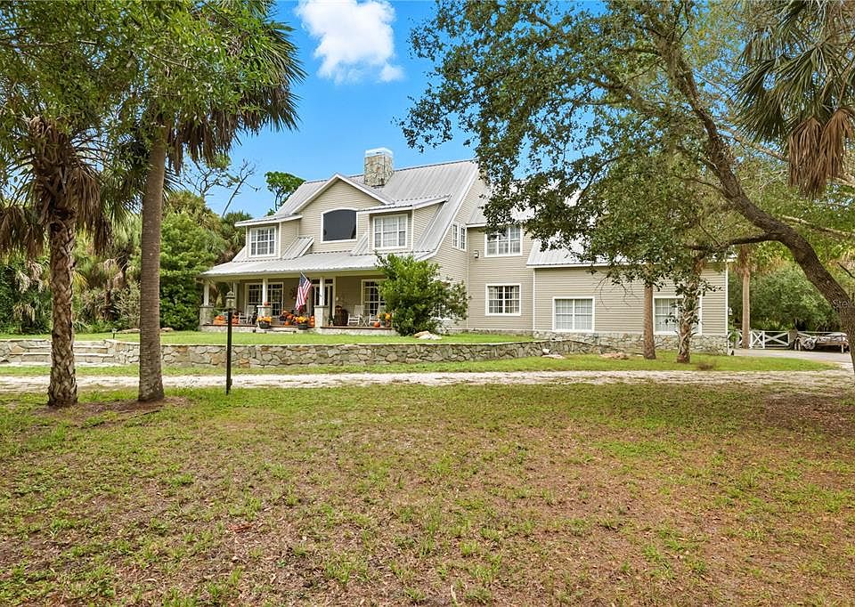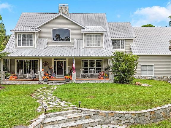 Nestled on 4.4 sprawling acres, this remarkable property offers two stunning homes, complete with a sparkling pool and an outdoor kitchen. It’s true country living but with the convenience of shopping, dining, and the white sandy Gulf beaches just minutes away. The main house radiates country charm, welcoming you with a classic front porch. Step inside to a traditional foyer featuring warm wood plank flooring, tongue-and-groove wood ceilings, and a beautifully crafted wood staircase. Designed for entertaining, the formal dining room flows seamlessly into a spectacular kitchen, where handcrafted wood cabinets with glass inserts, double wall ovens, a gas cooktop with a hood vent, and a spacious center island make cooking a delight. The living room is a showstopper with soaring cathedral ceilings, an abundance of windows that fill the space with natural light, and an impressive stone wood-burning fireplace. French doors lead to a relaxing covered porch overlooking the pool and peaceful natural surroundings. A private den and half bath complete the first floor. Upstairs, the primary suite is a true retreat, featuring its own gas fireplace with remote, a private balcony, dual sinks, a clawfoot soaking tub framed by plantation-shuttered windows, and Cedar-lined walk-in closets. A bonus room with a beamed ceiling and natural light offers endless possibilities. The home also boasts two bright and cheerful ensuite guest rooms with beautiful architectural details, plus a third guest room currently used as a craft room. Every inch of this home showcases craftsmanship, from handcrafted window casings to crown molding. While exuding classic charm, it’s also equipped with modern conveniences, including spray foam insulation, a combination of block construction and 2x6 framing, a zoned HVAC system (2018), a central vacuum, and a whole-house reverse osmosis water treatment system. The second home, built in 2020, has a modern farmhouse aesthetic with crisp white cabinetry, butcher block countertops, and stainless steel appliances in the kitchen—the heart of the home. Luxury vinyl plank flooring runs throughout, and the open-concept design, paired with large windows, creates a bright and airy feel. The spacious primary bedroom is on the first floor, featuring dual sinks, a walk-in shower, and private deck access. A half bath and laundry room with extra storage complete the downstairs. Upstairs, two generously sized guest rooms share a full bath, along with additional storage closets. Like the main home, this residence also has a whole-house reverse osmosis water treatment system. This property is designed to embrace the great outdoors. By the pool area, you’ll find a charming pavilion with a fully equipped outdoor kitchen, the rustic charm of an “outhouse” with functioning plumbing that serves as a pool bath. For those needing ample storage or workspace, the property features a 40 x 60 Quonset Hut with electricity, a half bath, a loft, and a lift. Additionally, a mobile home has been transformed into a workshop or art studio, complete with insulation and air conditioning. Two storage containers have been placed parallel, with custom trusses spanning the opening to create another covered workspace. These can remain for the buyer’s use or be removed. This one-of-a-kind property offers an incredible blend of country charm, modern amenities, and versatile spaces to fit any lifestyle. Don't miss the chance to make it yours!