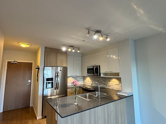 Welcome to Mackin Park, a modern community in the heart of Coquitlam's historic Maillardville. This bright 1-bedroom + den apartment offers an open-concept layout with a stylish kitchen, complete with a large island countertop perfect for cooking and entertaining. Rent includes 1 secured underground parking stall. Enjoy unbeatable convenience with shopping, restaurants, transit, and the SkyTrain just minutes away, plus quick access to Highway 1.