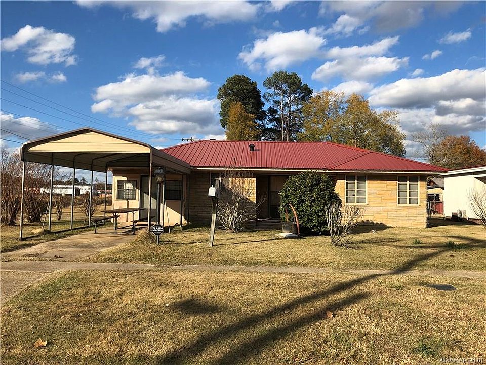 Nice corner lot within walking distance to grocery store and Main Street. Cute, cozy home in great condition...metal roof only 1 year old, blown in insulation, central air and heat, alarm system, double carport metal shed on a concrete slab and a 20x20 metal storage shed on a concrete slab included.