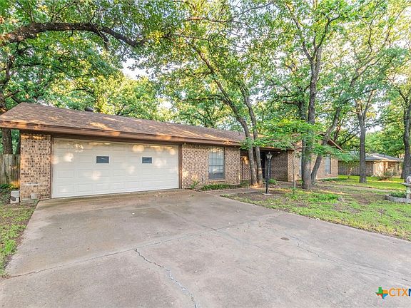 Nestled beneath a canopy of mature oak trees on a spacious 0.34-acre lot, this beautifully updated 3-bedroom, 2-bath traditional brick home offers comfort, charm, and functionality in great location just outside Gatesville city limits. Featuring 1,619 square feet of living space, the home welcomes you with fresh laminate wood flooring and a warm, inviting living room with vaulted ceilings and a cozy wood-burning fireplace. The galley-style kitchen showcases rich wood cabinetry, ample storage, and a functional layout with an adjacent dining area perfect for family meals. The generously sized primary bedroom includes a private en suite bath, while two additional bedrooms provide space for guests, children, or a home office. Step outside to enjoy a fully fenced, private backyard complete with a storage shed and plenty of space to garden, relax, or entertain. Additional highlights include a new roof in 2023, two-car garage, and an unbeatable location surrounded by natural beauty. This timeless Texas home is ready to welcome its next chapter — don’t miss it!