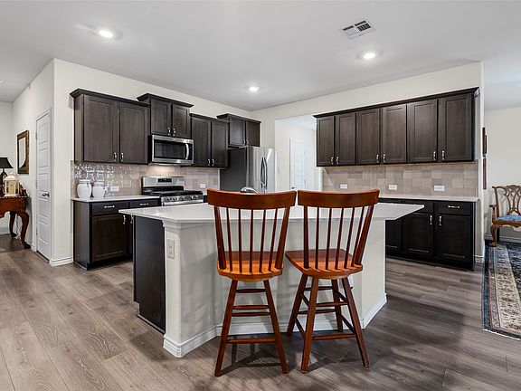 Step inside to an inviting open floor plan that seamlessly connects the large living and dining areas to the chef-inspired kitchen. The kitchen features a massive island with breakfast seating, lots of cabinetry, and sleek finishes—perfect for entertaining or casual family meals.