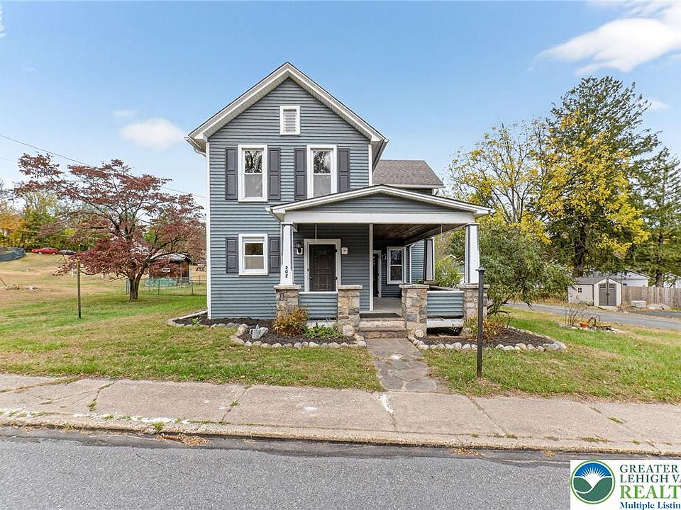 Nestled in the heart of Portland Borough, Northampton County, 202 Main Street presents a farmhouse blending timeless rustic charm with modern livability on a generous half-acre lot. This property is enveloped by a serene fenced backyard, offers an idyllic canvas for outdoor gatherings, gardening, or simply savoring the tranquility of small-town Pennsylvania living. A detached two-car garage provides ample storage and convenience, while the inviting covered front porch provides you peace for those early morning days.
