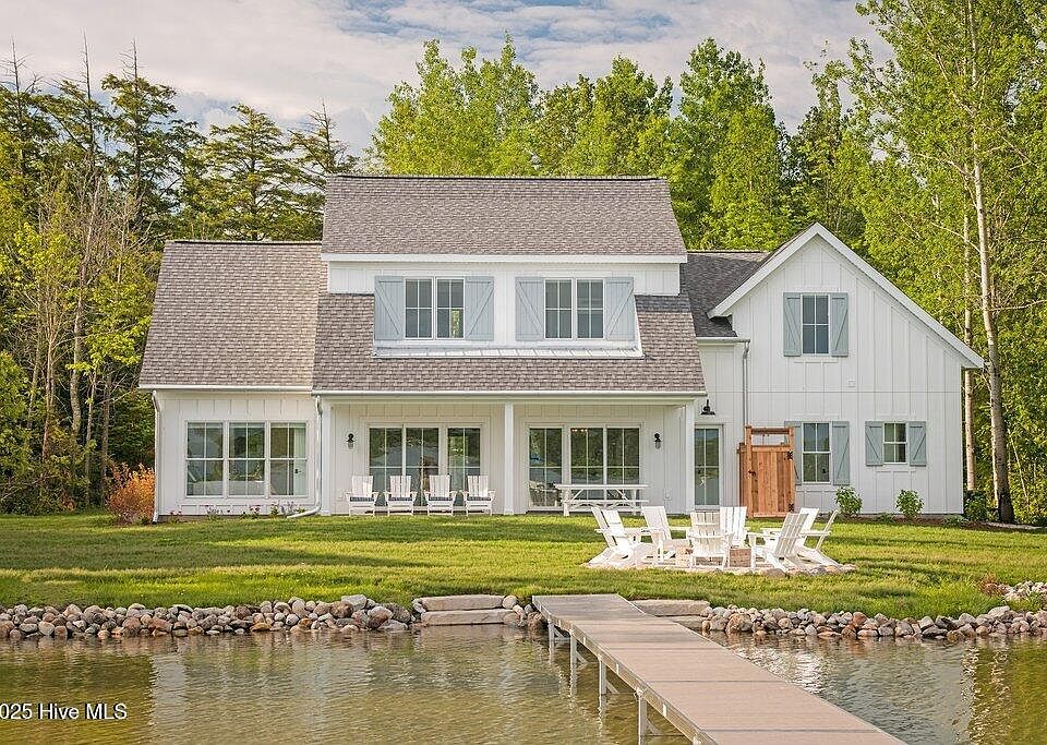 Fantastic level lot with a westerly view from the rear and east view from the front. This lot is across the street from the sound. And is priced to sell. This plan with its roof top terrace could provide a view of the sound. This compact plan has everything needed for a luxurious cottage retreat or full time residence. A welcoming front porch brings you into an open kitchen, living, and dining which open to a rear covered porch. The private master suite is conveniently located on the main floor. A two stall garage, mud room, laundry, half bath, and open view in the rear. Upstairs are two additional bedrooms sharing a bath and an open loft area. The bonus room could be storage, office, exercise, or another bunk room. This to-be-built home is one of the many plans that can be built on this lot. Lot is sold separately.Plan is only representative of what could be built.
