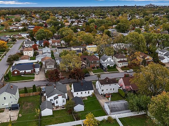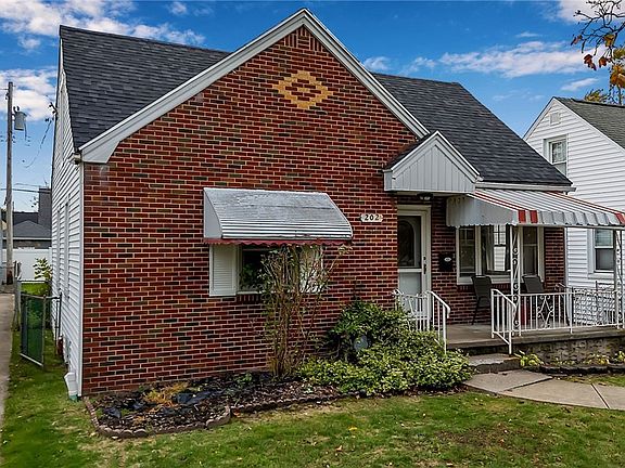 Charming brick Cape with covered front porch! Welcome home to this Brick front Cape featuring a welcoming covered front porch, perfect for enjoying your morning coffee or relaxing on cool fall evenings. Inside, you’ll find a spacious and bright living room with hardwood floors that flow throughout the entire home. The kitchen offers maple cabinets, solid surface counters, and recessed lighting. Two first-floor bedrooms and a full bathroom adds to the convenient floorplan, while the second floor features a generous bedroom with a walk-through den/office area and a closet, perfect for a home office or sitting area. The basement offers great potential as additional finished living space, complete with a bar and glass block windows. Enjoy the nice-sized backyard and detached garage, all move-in ready and waiting for you to make it home!