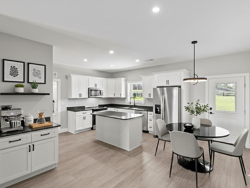 ''Step into this newly built, 2025 ranch-style gem featuring 3 bedrooms and 2 full baths. Revel in the modern luxury of granite countertops in the kitchen set facing a black shiplap, white, and grey kitchen. Both bathrooms and the utility room boast sleek tile flooring. Your backyard oasis borders tranquil agricultural land, complete with a covered porch and extended patio for endless relaxation. Nestled on a dead-end road, the living room's 15-foot vaulted ceilings create an open, airy feel. With a blend of modern finishes and a seamless kitchen transition, this home is designed for both elegance and everyday comfort. Come see for yourself!''