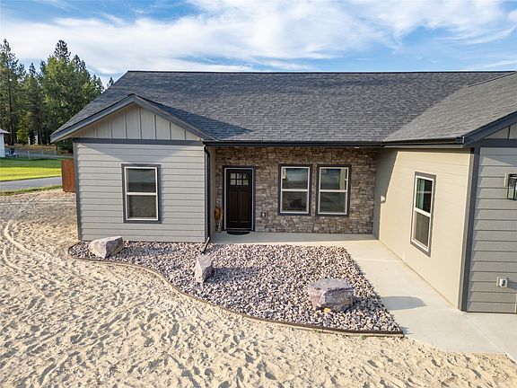 This custom new construction home is nestled on a spacious corner lot in the prestigious Creek View Estates. Designed with a ranch-style, single-level layout, this 3-bedroom, 2-bathroom residence features a rock-faced entryway and an open-concept kitchen, dining, and living room with 9-foot ceilings. The kitchen, bathrooms, and laundry room all boast sleek white soft-close cabinetry. The master suite includes a walk-in closet and an ensuite bath with double sinks, a custom walk-in tiled shower, and a private water closet. A ducted heat pump ensures comfort throughout the year, while an underground sprinkler system makes landscaping maintenance a breeze. Enjoy stunning mountain views from both the front and back yards. Additional features include an attached double-car garage with a concrete driveway. Contact John Ague at 406-283-1138, or your real estate professional.