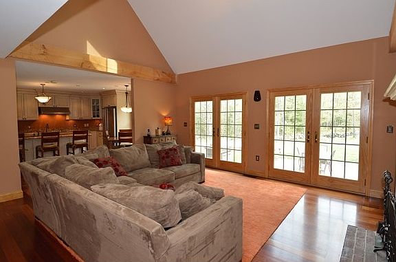 Set on an open area atop a knoll in the quiet country setting, this delightful young post and beam contemporary cape is ready for that new owner who appreciates the quality, open concept design and natural setting. If you love the bright and open feeling, this design is perfect! This home is set up for entertaining or relaxing, from the great room with cathedral ceiling and wood burning fireplace to the designer kitchen, and formal dining room as well. Upgraded Brazilian cherry floors, granite counter tops, stainless steel appliances and a fabulous walk in pantry provide a a kitchen to delight any cook. First floor master and other bedrooms are generous in size. Finished lower level can be used as a family room or playroom or the popular man cave entertainment room. Nature abounds in this delightful country setting. Enjoy the tranquil, peaceful setting from your front porch or back patio. Beautiful setting inside and out! This could be the place you have been waiting for!!
