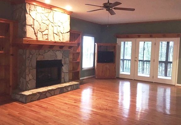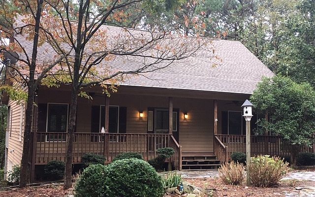 Well maintained home on wooded, private 2.83 acres located in beautiful gated community. The exterior boasts of large covered front porch, rear screened deck, outbuilding, established landscaping and level lot. Interior has large living room with hardwood flooring, stone fireplace, kitchen with bay eating area, generous cabinets and counter space. Master suite on main floor with doors to screened deck, large walk-in closet. Upper floor has two additional bedrooms with dormer windows, walk-in closets and full bath. Lower level has large a bonus room with closets ideal for office or den, full bathroom and two car garage with door openers.