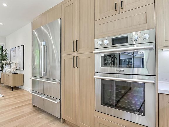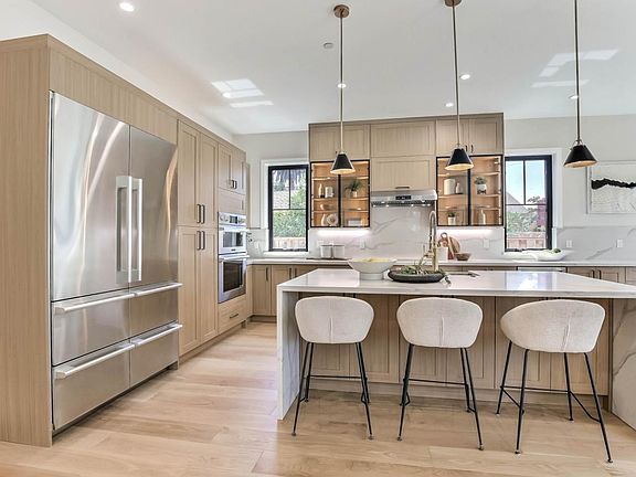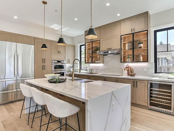A 2025 brand-new home with ADU in the heart of Mountain View. Nestled in a vibrant neighborhood with top-rated schools such as Los Altos High School. Easy access to Silicon Valleys top employer: Apple, Meta, Microsoft, Amazon, LinkedIn, & Google, Caltrain, light rail, & corporate shuttles. Mins. from Castro Street, Farmers Market & Shoreline Park. Greeted by entry door with glass panels & black-trimmed windows. Inside, an open floor plan with hardwood flooring, recessed lighting, linear fireplace & sliding glass doors. A dining area, breakfast bar & nook, & large island. The Kitchen boasts quartz countertops & backsplash, glass-front wall cabinets, & stainless steel appliance: custom built-in French door refrigerator, cooktop & hood, oven with microwave, dishwasher, wine cooler, & a stainless steel farmhouse workstation sink. The primary bed has a high vaulted ceiling, walk-in closet , bath with a frameless glass shower enclosure, shower niche, linear drain, free-standing soaking tub & dual-sink vanity. The hallway baths feature showers & tubs, frameless sliding glass doors & vanities. Bedrooms are spacious including one ensuite & a home office. The ADU has vaulted ceiling, skylight, kitchen with island & stainless steel appliances: range with oven, microwave,& refrigerator.