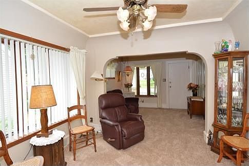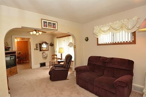 This cozy bungalow is an easy choice. Loaded with updates, all you need to do is move in and enjoy! New carpeting (2013) in living room and dining room, updated bathroom with ceramic tile floor and glass block window, updated kitchen includes built in GE microwave & dishwasher, along with stove and refrigerator. Lower level features rec room with dry bar and includes six bar stools, keg refrigerator, love seat, chair and table - already furnished for extra entertaining space. Newer hi-efficiency furnace, water heater & dimensional shingle roof on house and two car garage (with attic storage). Expandable second floor, side drive, nice front porch, mud room on back of house and fenced in backyard are all extra bonuses. See this one today!