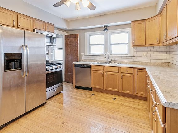 Don't miss out on this charming corner lot bungalow with 3 bedrooms, 2 full baths, 2.5 car garage and a full basement. You will love the spacious updated kitchen with maple cabinetry, stone counters, backsplash and stainless steel appliances. The newly updated bath on the main floor has new vanity. Gleaming hardwood floors throughout the main floor. Massive backyard is beautifully fenced in (cost $7,000). Close to life's conveniences: parks, shopping, diverse restaurants, about 6 blocks from the Metra Station and major highways.