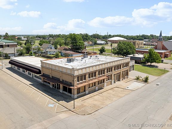 Unique rare residential/commercial building located in Downtown Cushing. This building includes over 3000 sq ft loft living, two commercial spaces over 1300 sq ft each side, Garage has four bays, and sitting area that has sink, mini fridge area and is cooled and heated with access to a bathroom. Upstairs loft is an open concept living perfect for entertaining. The kitchen has Granite countertops, center island, eating island, wet bar, wine cellar, oversized pantry and much more. The owner’s suite includes an unbelievable walk-in closet, separate sitting area that could be used for office or craft room and en-suite bath has double sinks, jetted tub and separate shower. The outdoor living space includes an outdoor kitchen, plenty of space to hold a gathering. There was a fire on one side of the commercial space, this side has been gutted and is an open space to use your imagination and creativity to build a custom space.