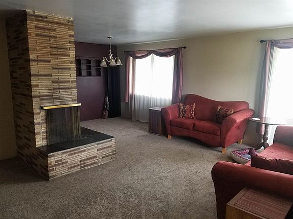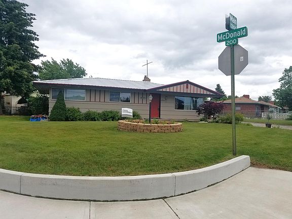 Perfect Valley Rancher. 3 beds up, 1 non-egg bed down, 2 wood burning fireplaces, informal dining, appliances stay, Gas F/A heat and gas H2O. There are oak hardwood floors on the main level under the newer carpet. There is a workbench in basement, a second fireplace in basement, plus a family room with dry bar. Out the back is a huge, covered cement patio, 2 storage sheds for all the yard equipment, a large, fenced back yard with RV gate and room for RV's. Close to every amenity in the valley and easy access to 1-90.