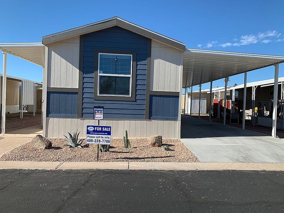 Price Drop!!!!!This is a beautiful 2020 Mobilehome for sale in El Dorado Estates in Apache Junction Arizona.It is partially furnished.Epoxy in front of home and in the 15x50 huge garage.It has a Tuff Shed,Steel front security screen door,Like New paint inside and outside,All appliances stay (Fridge,Gas Range ,dishwasher,microwave, washer and dryer)..New countertops in kitchen and bathrooms,Also there is a H20 Water system throughout this beautiful home!! Leased Land $725 a Month. 55+ Park