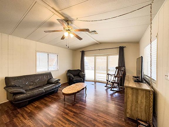 If you're looking for an amazing 55+ community with popular amenities this partially furnished 2 BR/1BA home needs on a great corner lot may be perfect for you! Home needs some fix-up (paint, floor covering, etc) but has newer central AC (R410A) & furnace, water heater, full-size washer & dryer & stainless steel kitchen appliances (FF Fridge & 30" Gas Range). Features Open-concept kitchen & living room with Southern front exposure, large front windows which let in lots of natural light plus a covered patio, entry ramp and carport with convenient side by side tandem parking and area rear mountain view. Located One block from the clubhouse, residents enjoy the large heated pool, hot tub, ballroom, library and exercise room, plus plenty of planned activities & social events. Close vicinity to shopping, banking, golf, hiking and restaurants. Space rent is currently $582 + utilities. Available Immediately and Pets OK!