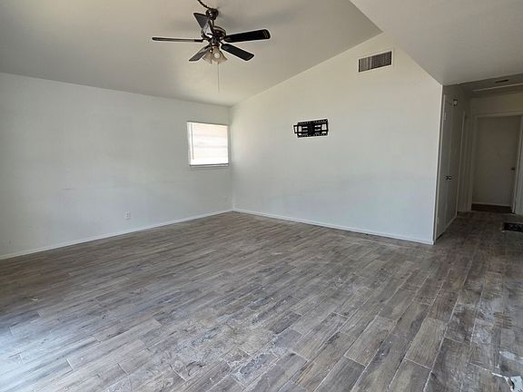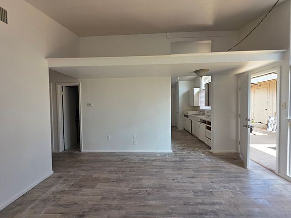 What a great property. Duplex,, but separated by a carport so the living areas do not connect. This unit is adorable and easy to keep clean with wood like tile in the main areas and master bedroom. The 2 guest rooms have carpet. A vaulted ceiling and floor to ceiling windows offer great natural light. There is a yard and a 1 car carport.