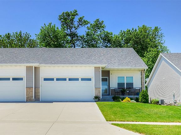 Charming, updated, ranch bi-attached home featuring an inviting, open style floor plan with a spacious living area and kitchen. Beautiful 4 season sunroom just off the kitchen area, offering lots of extra natural lighting. 2 bedrooms on main floor with 2 full baths and 1 bedroom & 1 full bath on lower level. Kitchen features quartz countertops throughout, as well as a nice sized walk in pantry with wire shelving. Flex room in front of house has potential for an office, work out room, play room, etc. Back yard is beautifully landscaped and would make a great entertaining space. Storage space under the sunroom for mower, etc. Open, spacious living area in basement. Generous storage space off of it! Hunter Douglas window coverings throughout main level. Aquasana Home Water System. Active radon system. Leafguard gutter coverings. Conveniently located in the heart of Grimes in a quiet neighborhood, with easy access to Hwy. 141. Close to lots of local amenities, including the Dallas Center-Grimes Schools. Investor friendly. No HOA or fees. A must see!