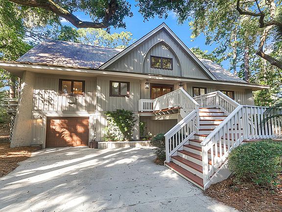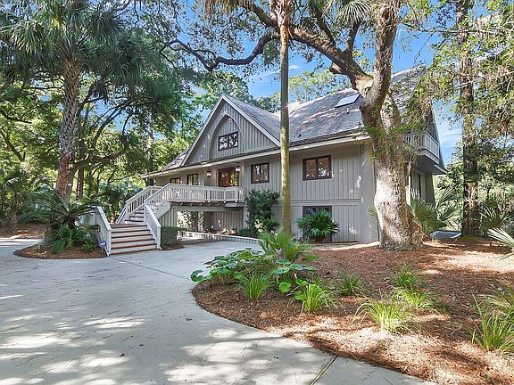 Welcome to this charming contemporary cottage on Kiawah Island, offering 3,355 square feet of thoughtfully designed living space. This delightful home, renovated in 2003 by Dolphin Builders, features 4 bedrooms and 4 bathrooms, all under a striking cathedral beamed ceiling, creating an open and airy ambiance.As you enter the home, you are greeted by a welcoming foyer. To the right, you'll find a well-appointed office, perfect for working from home or quiet study. Straight ahead, the sunken living room invites you in with its warmth, featuring sliding glass doors that open to a large year-round porch with stunning views of the tranquil lagoon.The heart of the home is the kitchen, which boasts double ovens, a center island, and cream-colored wood cabinetry.It seamlessly connects to the dining area and a casual gathering space, making it ideal for entertaining and family meals. The outdoor deck provides views of the 8th hole of Cougar Point Golf Course. The main level also includes the primary bedroom, complete with a large walk-in closet, a spacious bathroom, and direct access to the porch. An additional bedroom and bathroom, along with a laundry room with a pantry, provide convenience and comfort on this floor. Upstairs, you'll find two more bedrooms and bathrooms, each with access to its own deck, separated by a wide, spacious hallway, offering privacy and ample room for guests or family members. The home includes a tandem two-car garage and a large, heated and air-conditioned lower level with a door leading to the rear yard. This area can accommodate a ping-pong or pool table and provides plenty of storage. The large driveway provides plenty of additional parking. Four HVAC systems ages 2009, 2015, 2015, 2024. Roof replaced in 2014 with 24" cedar shakes from Canada. Located on a quiet cul-de-sac, this property offers an easy, 4 minute bike ride to the beach without the need to cross Kiawah Island Drive. Simply follow Broomsedge Lane to the convenient underpass. Embrace the Kiawah Island lifestyle in this charming cottage, where comfort, elegance, and natural beauty come together in perfect harmony. Owners of a Kiawah Island Properties, may join the Governor's Club and may use the Sandcastle.