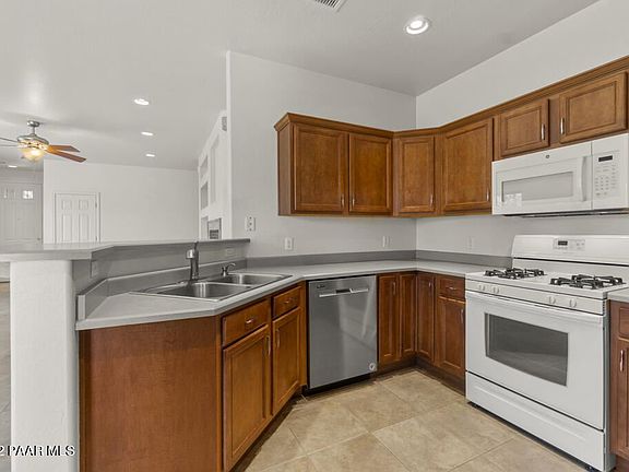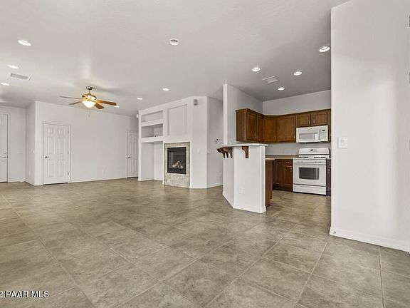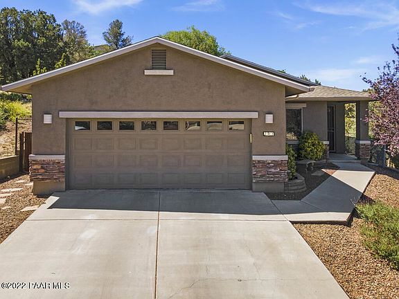 This 3-bed, 2-bath, 2-car garage, beautifully well-maintained home features a sit-up breakfast bar and gas fireplace in living room creating an open yet cozy gathering area. The private patio with firepit is perfect for relaxing and entertaining. Fenced back yard with raised planter beds are a gardener's dream. Lots of cabinets/storage in garage. Located just 5 minutes (less than 2 miles) from downtown Prescott. Recent upgrades include: NEW ROOF, SOLAR PANELS (Owned), Primary bedroom blackout shades, new screens in all rooms except bathroom, new hot water heater (2020), garage and security doors replaced and rekeyed, hot tub outlets replaced and ready for install. Additional optional adjoining lot available for $55K when purchased together. Call today for a showing!