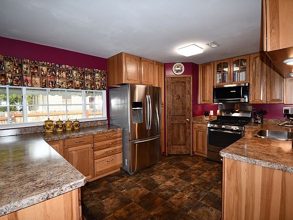The meticulous landscaping and front Trex deck will be what grabs your attention at first. Entering the home, the main level has refinished original hardwood floors. The living area features a beautiful stone hearth with an insert pellet stove and a large bay window that provides an excessive amount of natural lighting. Newly remodeled kitchen with all new stainless steel appliances, including a gas stove. The updated kitchen has two pantries, with an abundance of storage space. The kitchen has two breakfast bars with seating, one that separates the dining from the kitchen. You will find two more bedrooms and two full baths on the main level. Master bedroom has a vaulted ceiling with a huge amount of storage and a walk-in cedar lined closet with an adjoining full bath. A laundry room is located on the main level with coat closets and a utility sink. You have access to the garage and back yard from the laundry room. Basement has a large family room with another pellet stove, all new carpet, 3 bedrooms, and 1 full bath. There is also a small utility room with a sink. The home sits on a 7200 sq' corner lot with a 6ft privacy fence in the back yard. The backyard has a concrete patio with a clothesline, a garden area, with underground sprinklers. The property also has an 8x12 storage shed. Attached to the house is a finished 30x30 heated garage that includes an 8x8 Sunroom. All figures are +\- and the information provided is deemed accurate but not guaranteed and should be independently verified.