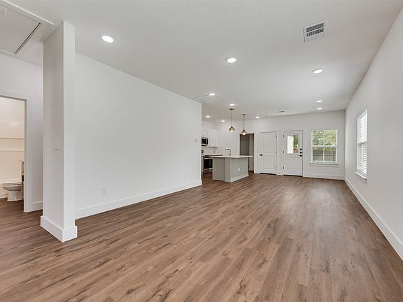BEAUTIFUL NEW CONSTRUCTION and HUGE BACKYARD. This charming 1-story, open floor plan features 3- bedrooms and 2 baths with kitchen island, separate pantry and separate utility room. Designed for low-maintenance, amenities include 3cm granite countertops, stainless steel appliances, wide-plank luxury vinyl plank flooring, walk-in closet at primary bedroom, dual sinks at primary bathroom, and upgraded interior door and trim package. High quality construction standards include two-stage HVAC system, post-tension engineered foundation and foam insulation at attic and exterior walls. Blinds are included, as well as a fully fenced and landscaped yard. Very popular floorplan, see it before it is gone!