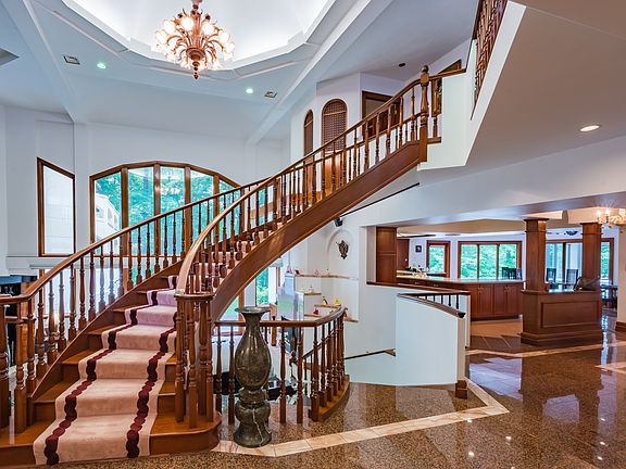 Nestled on over 3 acres of mature landscaping, 202 Pinewood Drive is a one-of-a-kind home with over 10000 sq ft of finished living space. A two-story entry & dramatic family room greet the visitor with sweeping views of a custom-crafted Moranio chandelier & walls of windows allowing the beauty of nature to be part of your indoor life. A single piece of wood was crafted & carved into a luxurious circular staircase & serves as a centerpiece of the first floor. The kitchen is every chef's dream & adjoins the eat-in area as well as the formal dining room. Two oversized islands & a butler's sink area combined with 2 dishwashers, multiple ovens & stovetops create a buffet area for entertaining. The kitchen overlooks the indoor pool. All 4 bedrooms are ensuite for privacy & convenience. The master suite defines indulgence with a see-through fireplace, large shower & jet spray tub. The lower level, the home has been crafted with a great room, theater area & bar. 2 levels with multiple garages.