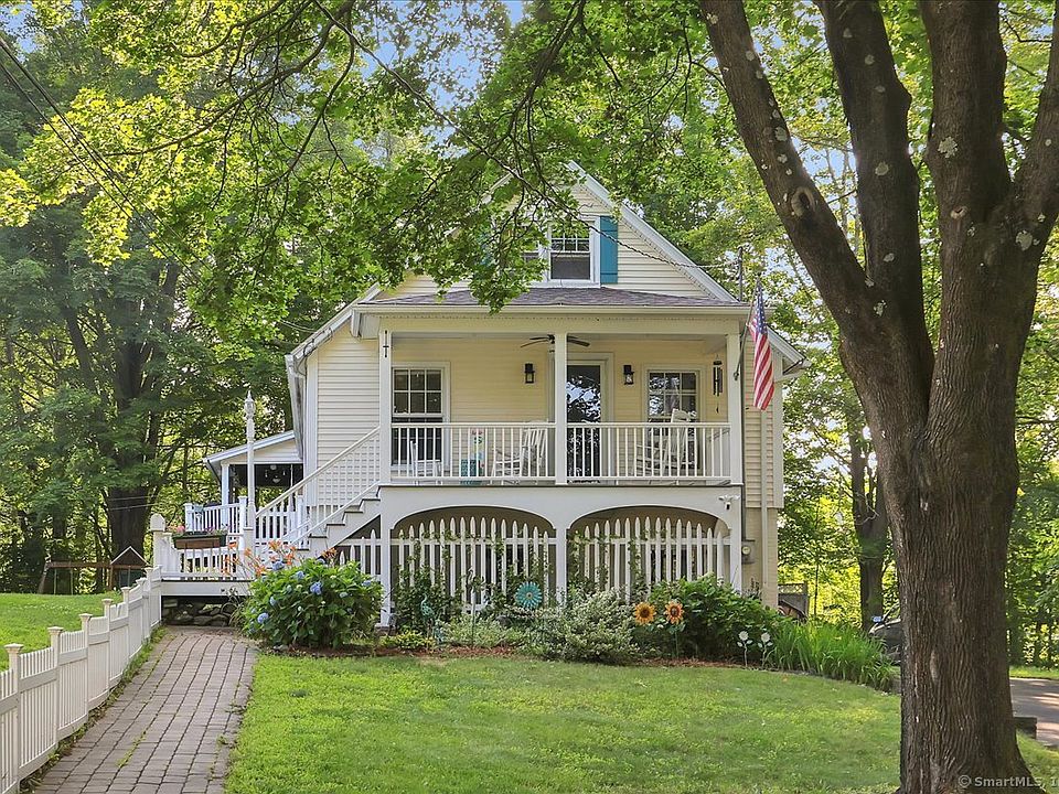 Welcome to Unionville's Old Creamery! This darling antique colonial is just a short stroll to the picturesque Unionville Center, the Farmington River, and the Farmington River Trails bike and walking path. - a warm and inviting Colonial tucked away in one of Farmington's most scenic settings. This charming three-bedroom, two-bath home offers comfort, convenience, and a touch of elegance with panoramic views from your own front yard. Inside, you'll find beautiful hardwood floors preserved under brand new vinyl flooring throughout both levels. Natural light fills the space, highlighting an ideal layout that includes a dedicated office-perfect for remote work or quiet study. Enjoy the breakfast nook as well as the front and side porches! The home also features a spacious basement and attached garage, offering plenty of storage and utility space. DO NOT let the age of the home fool you, it has been renovated and cared for with a newer furnace, hot water heater, roof, flooring, kitchen, and MORE! Step outside to a fully fenced lawn-great for pets, play, or peaceful evenings. The long, private driveway adds convenience, while the elevated lot offers a quiet retreat with a sweeping view. This is more than a home-it's your peaceful escape in the heart of Farmington.