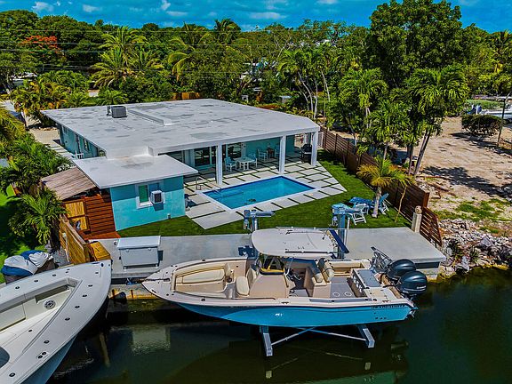 Completely Remodeled Canal-Front Gem in Prime Plantation Key Location | Discover this stunning 3-bedroom, 2-bath ground-level home, fully remodeled and designed for effortless waterfront living. Solid concrete construction with a concrete roof and all impact windows and doors ensures peace of mind, while sleek porcelain tile floors and elegant quartzite kitchen countertops add a touch of modern luxury.Enjoy wide water views from your backyard oasis, set on a spacious turning basin that's a true sanctuary for fish and manatees. Boaters will appreciate the brand new dock, 15k lb boat lift, and direct access to both bay and ocean.Cool off in the new salt water pool with heater and chiller, and rest easy with all-new electric, a new A/C system, and high-end finishes throughout. This exceptional home is located in one of Plantation Key's most sought-after family neighborhoods, just minutes from top-rated schools, shopping, dining, and more.Easy to show by appointment--don't miss this rare waterfront opportunity!