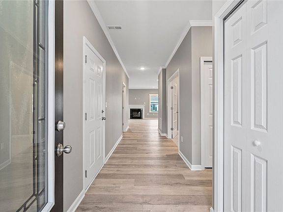 Former model home with extra upgrades! Entertain in style with the wonderful open floor plan. Hardwood floors throughout entry and main living areas, ceramic tile in bathrooms. Fabulous kitchen has SS appliances, soft close cabinets, granite and backsplash. Beautiful kitchen island allows for more counterspace as well as more seating. Primary bedroom has tray ceiling with recessed lighting and spa-like private bathroom. Enjoy showers every morning with the dual shower heads plus spray attachment. Huge WIC for great storage. Great size second bedroom with beautiful triple window. Lovely den with french doors offers a cozy work space. Or could be converted to 3rd bdrm. 2 car garage with opener. HOA covers lawn maintenance.