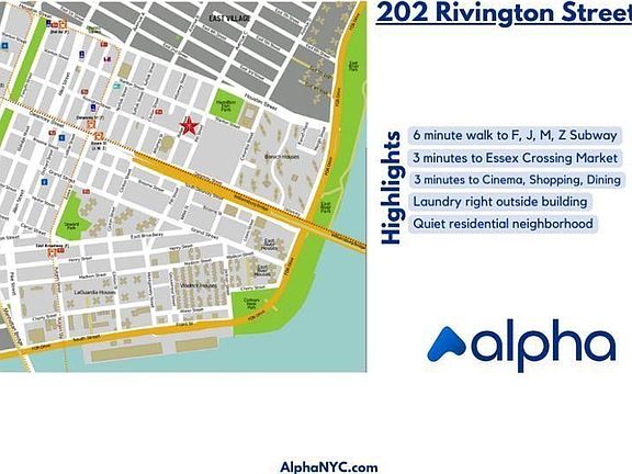 The Building: Located on Rivington & Ridge, with all the bars, restaurants and shopping the Lower East Side and Chinatown has to offer....and, just steps to the Williamsburg Bridge. Nearby train service includes the F, J and M at Delancey St.