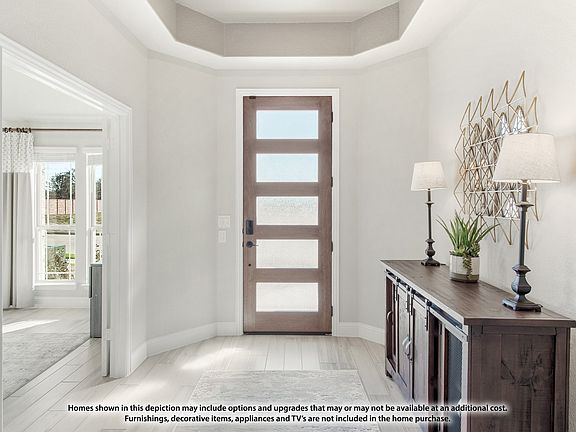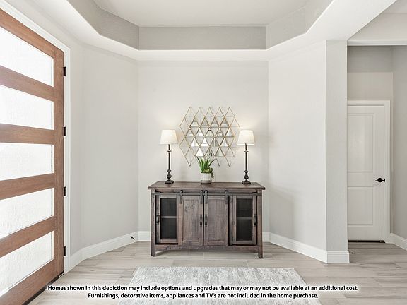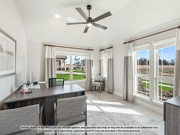 NEW! NEVER LIVED IN. Ready in March 2026, this Bloomfield Homes Hawthorne brings 4 bedrooms, 2 baths, a front study with flexible use, and a 3-car garage into an open one-story layout! The oversized lot gives the home a broader footprint, and the exterior blends brick with stone accents and an 8’ front door that sets a defined entry point. RevWood laminate floors lead into the main gathering areas and set a durable, high-function foundation for daily use. The family room looks out towards the backyard and features a stone fireplace that reaches the ceiling, establishing a strong visual element within the space. The kitchen sits adjacent and includes gas cooking, upgraded quartz countertops, custom cabinetry, and gas cooking on built-in appliances. A breakfast area connects the kitchen and family room and provides a direct path to the covered patio, plus there's an added buffet for extra storage or display space. Secondary bedrooms are in the rear sharing a bath directly outside in the hall. Huge Primary Suite does not disappoint, with a window seat adding charm and a 5-piece ensuite bath. Buying new means peace of mind from the energy-efficient elements that lower bills to the builder warranty that supports your first years in the home. Easier move-in with things like the landscaping, irrigation, fencing, and even blinds all taken care of! Call or visit Bloomfield Homes at Waverly Estates to learn more - model open daily!