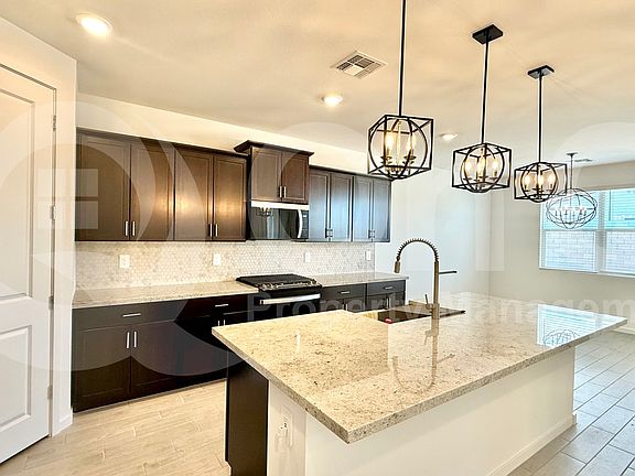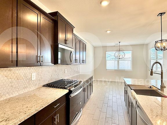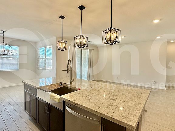 Step inside this beautifully designed 2,139 square foot single-story home featuring 4 spacious bedrooms and 3 modern bathrooms in Goodyear's desirable Silva Farms community. The inviting kitchen is a true centerpiece with sleek appliances including a refrigerator, oven, built-in microwave, and dishwasher, all complemented by ample cabinetry and a functional open-concept layout ideal for daily living and entertaining. Bright and airy living areas showcase a seamless flow, accentuated by tile and plush carpet flooring in all the right places, creating a warm and welcoming atmosphere. The thoughtful floor plan includes versatile spaces perfect for a home office or play area. Retreat to the private primary suite featuring a generous walk-in closet and an ensuite bath with dual sinks and a glass-enclosed shower. Three additional bedrooms and two full baths offer comfort and flexibility for family or guests. A dedicated laundry room includes a washer and dryer, while whole-home AC ensures comfort year-round. Parking is provided by a 2-car garage for convenience and extra storage. Outside, enjoy a private backyard with a covered patioperfect for relaxing evenings or weekend barbecues. Located in Silva Farms, residents enjoy community amenities such as a sparkling pool, playgrounds, and scenic biking and walking trails. Set in a prime Goodyear location near highly rated schools, parks, shopping, and dining, with easy access to major routes for commuting.