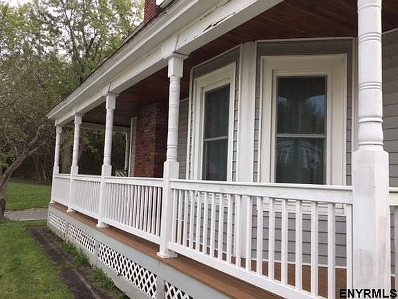 A unique spot at the end of a quiet street overlooking the Mohawk River people enjoy canoeing, or relax in a rocking chair on the wraparound porch in view of an open grassy knoll-an historic Army campground. Many windows make for a sunny, inviting home. The combined dining and living rooms create a large space for family. The downstairs bedroom could easily convert to a family room. Upgrades in 2012 include thermal windows, gas kitchen stove, water heater, vinyl siding, porch, etc. Ask about our 100% MBG!
