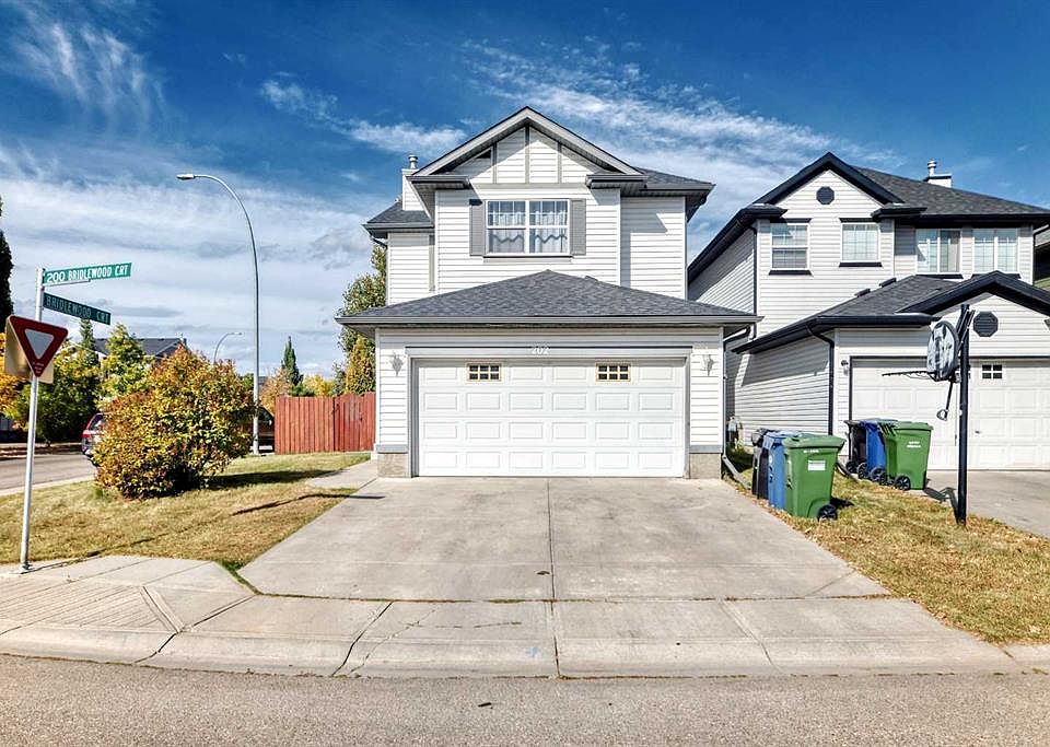 **SEE 3D TOUR!** Welcome to 202 Bridlewood Crt SW, a rare, upgraded, corner lot gem in one of SW Calgary’s most established family-friendly communities. Positioned on a quiet cul de sac, this home features a spacious double attached garage and generous frontage, a layout seldom offered in this neighbourhood. On the main level, you’ll discover a bright, open concept plan with dramatic "open to above" floor to ceiling height in the living room, large windows bathing the space in natural light, a stylish kitchen with corner pantry, and a dining area sliding onto a full size deck. Step outside and enjoy the expansive beautiful backyard, perfect for summer BBQs, entertaining, or relaxing outdoors. A convenient powder room and laundry complete this floor. Upstairs, the home offers three bedrooms, including a master suite with walk in closet and full ensuite, plus a second full bathroom. The fully finished basement is ideal for entertaining or extra living, with a cozy gas fireplace, flexible gym or office space, and an additional half bath, seamlessly combining comfort and functionality. Recent upgrades bring fresh appeal: entire main floor and basement re-floored with luxury vinyl plank, newly installed LED lighting, fresh interior paint, and new roof shingles and sidings in 2022. Transit is effortless, a short walk to local bus 14 service, and just a few minutes to Somerset Bridlewood C Train Station (Red Line) for direct access to downtown and beyond. Education options abound: Bridlewood School (K-6), Somerset School (K-4), Monsignor J. J. O’Brien (K-9 Catholic), as well as high schools like Centennial (10-12) and Bishop O’Byrne (10-12 Catholic), plus Glenmore Christian Academy for private schooling. Shopping and services are at your doorstep, Shoppes of Bridlewood, Bridlewood Shopping Centre, and Shawnessy Shopping Centre, and rapid access to Fish Creek Park. This home delivers a turnkey experience, blending modern updates with timeless design. Don’t miss this rare opportunity, homes of this quality and configuration in Bridlewood are seldom listed. Whether you’re a “move-up” buyer or a first time buyer seeking move in readiness in a top location, this is it. Book your private viewing today!
