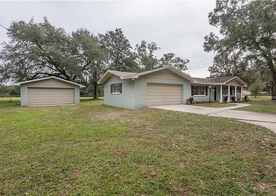 Come see this gorgeous mid century ranch style home in a peaceful country setting just minutes from I-4 and I-75. Nestled among beautiful grandfather oaks and gorgeous exotic trees is a completely fenced 1949 SQFT 3/2 ranch style home on 1 Acre, with updates that include a newer roof, refinished terrazzo floors, stainless steel appliances, and the list goes on. Enter into the formal living room through a double pocket-door entryway, enjoy a cup of coffee in your family room with a display of windows showcasing the great outdoor view. This home is perfect for entertaining family and friends, just imagine family gatherings at the dining room table next to the wood-burning fireplace. There's ample amount of storage with an attached two-car garage, detached 24x24 2 car garage equipped with 220/110 electric, water and A/C, and a large 550 SF metal barn/workshop. The property is equipped with 2 wells. So bring your green thumb and your animals to this country living just outside the City!! Come and unplug from the hustle and bustle of city living, but with all of the luxuries of a major city. This home is perfect for a quick commute to Tampa, Brandon, Lakeland, or Orlando. Plant a garden, ride 4 wheelers or dirt bikes, bring your toys, trailers, RV's, Boats, and animals. There's space for all of it and so much more. Come enjoy the days and nights of country and city living. Yes, with this property you can have you cake and eat it too!