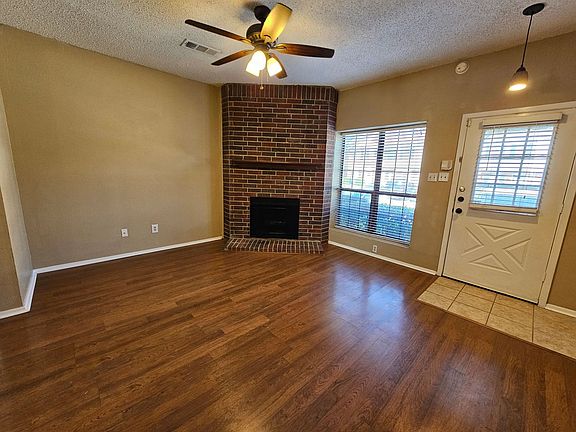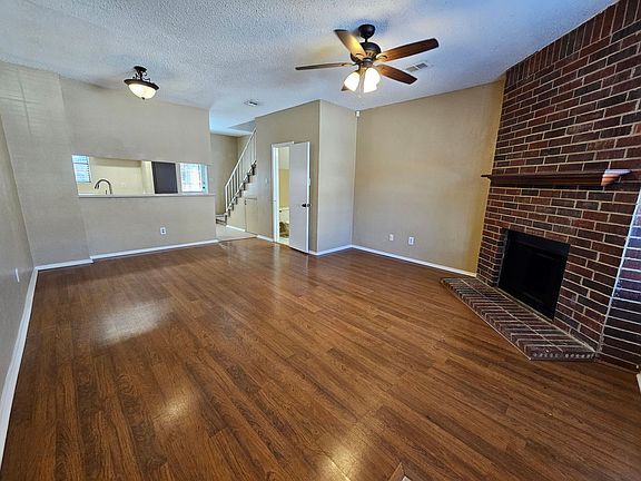 Stunning Two-Level Townhome with Water and Trash Included. Discover this beautiful two-bedroom, one-and-a-half-bathroom townhome located in a highly sought-after community. This charming residence features elegant wood flooring in the spacious living and dining areas, highlighted by a cozy brick wood-burning fireplace and stylish lighting fixtures on the lower level. Enjoy a range of amenities, including convenient washer and dryer connections, two designated parking spaces (clearly marked for easy access), and a private gated patio adjacent to the kitchenperfect for outdoor relaxation. Refrigerator will be installed prior to move in. Plus, water and trash services are included, making life even more convenient. The community also boasts a refreshing pool, offering you leisure and relaxation right at your doorstep.